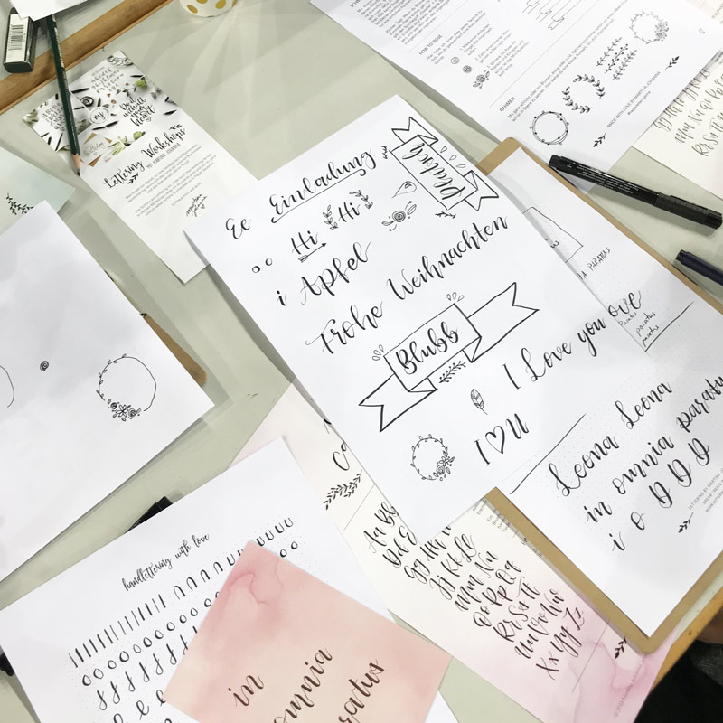Schön war es auf der Kreativzeit in den Messehallen Bremen. Drei Tage lang durfte ich dort kleine Schnupperkurse zum Thema „Brushlettering im modernen Kalligrafie Stil“ geben. Es war unglaublich aufregend und schön, so viele Menschen zu treffen, die Lust auf schöne Buchstaben haben getreu dem Motto: Endlich wieder schön schreiben!